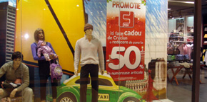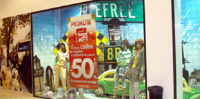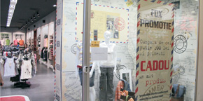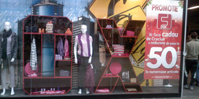 In ultima perioada, decorarea vitrinelor a capat un rol fundamental in conceptul de marketing al marilor branduri de retaileri. Pentru realizarea acestora se utilizeaza autocolant printat si laminat, autocolant cutter-plotter, canvas si o serie de alte materiale in functie de creativitatea celui care concepe campania.